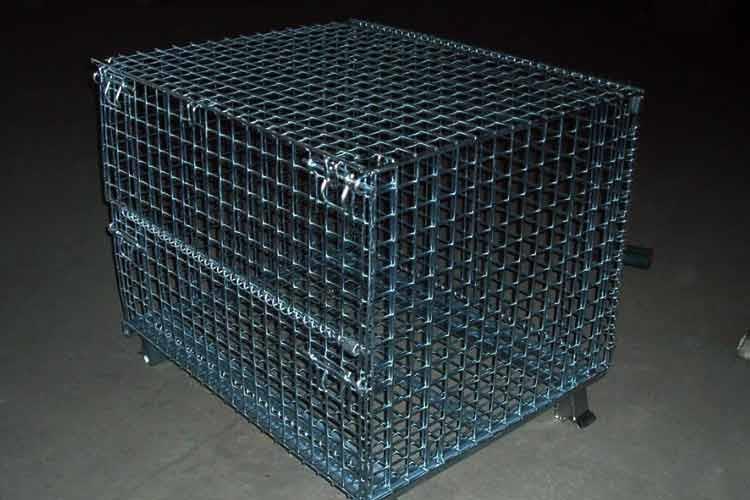 带盖蝴蝶笼具有牢固的插销结构构,既可以使蝴蝶笼在储物堆叠时关扣,又能够使各种不同状态下顺利开关,以储放物料。带盖蝴蝶笼的设计是为了随时存取货物提供了方便,在堆叠存储时,可以随时打开小门存入或取出物品,免除翻仓的麻烦;并且配合叉车、升降机、吊车等设备可进行作业。